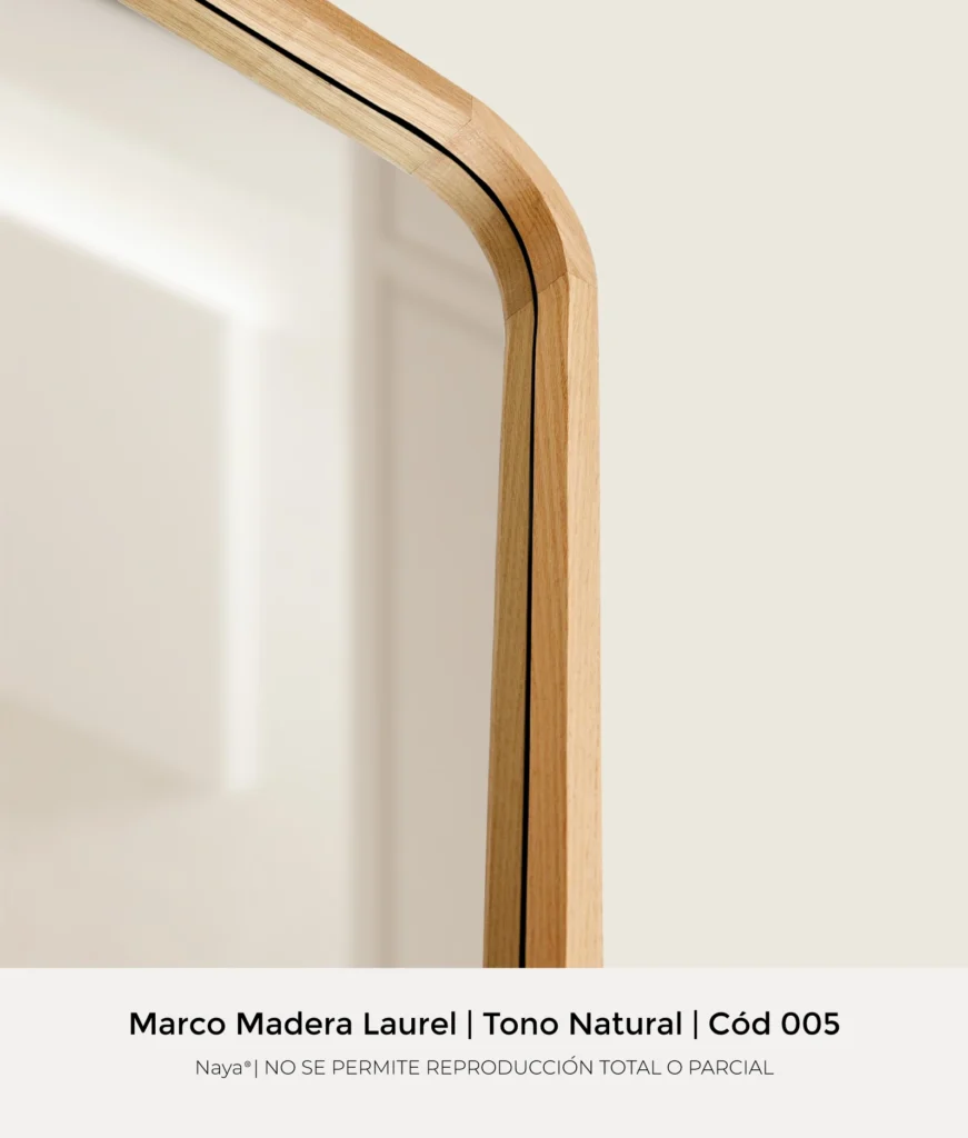 Marco de madera laurel tono natural esquinas curvas