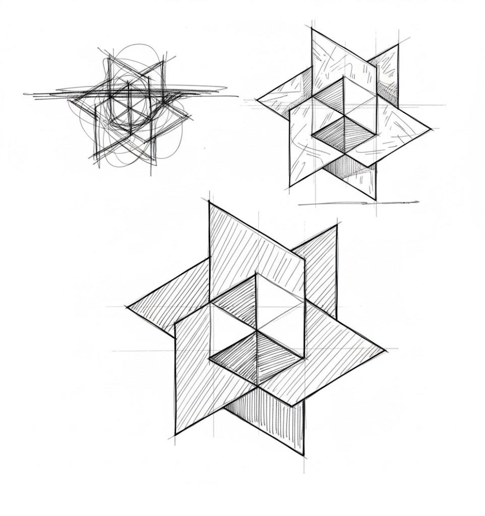 En el proceso creativo de Buena Estrella buscamos capturar la fuerza simbólica de la luz que guía. La estrella, eterna en todas las culturas, se reinterpretó en geometría tridimensional, donde cada plano facetado multiplica y fragmenta los reflejos, como un cuerpo vivo en constante transformación.