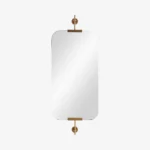 Espejo de color plata | Marco de hierro puro | El color del marco es dorado champagne | Este espejo tiene apliques superiores e inferiores metálicos | Tratamiento anticorrosivo para que su acabado permanezca intacto con el tiempo | Soporte trasero para ser soportado en pared garantizando la seguridad de la pieza y de las personas que habitan en el espacio | Manual y accesorios para su instalación incluidos en la caja de envío.