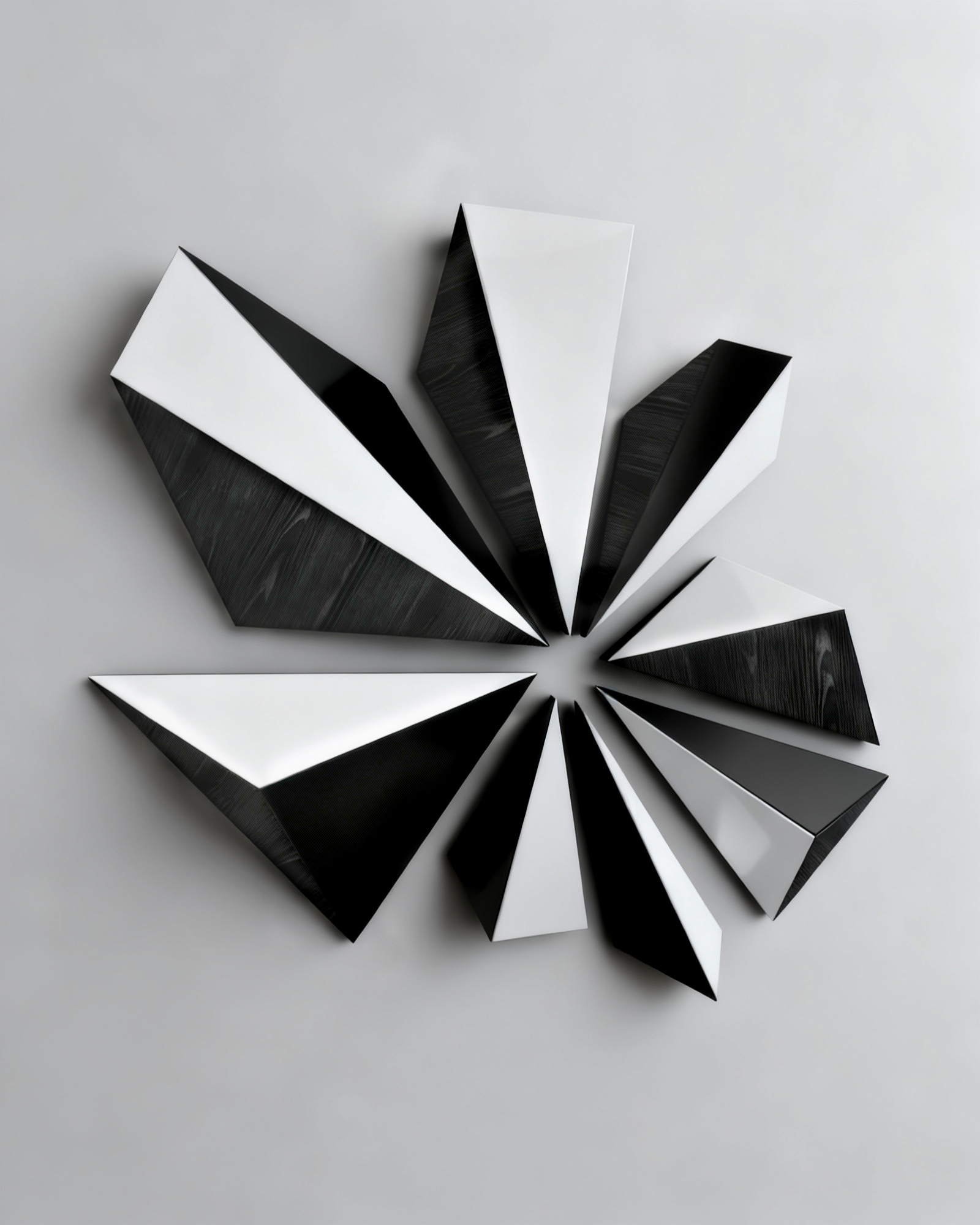 Sol Fractal es una escultura mural de colección concebida a partir de módulos geométricos tridimensionales que se disponen radialmente, evocando la energía expansiva del sol.