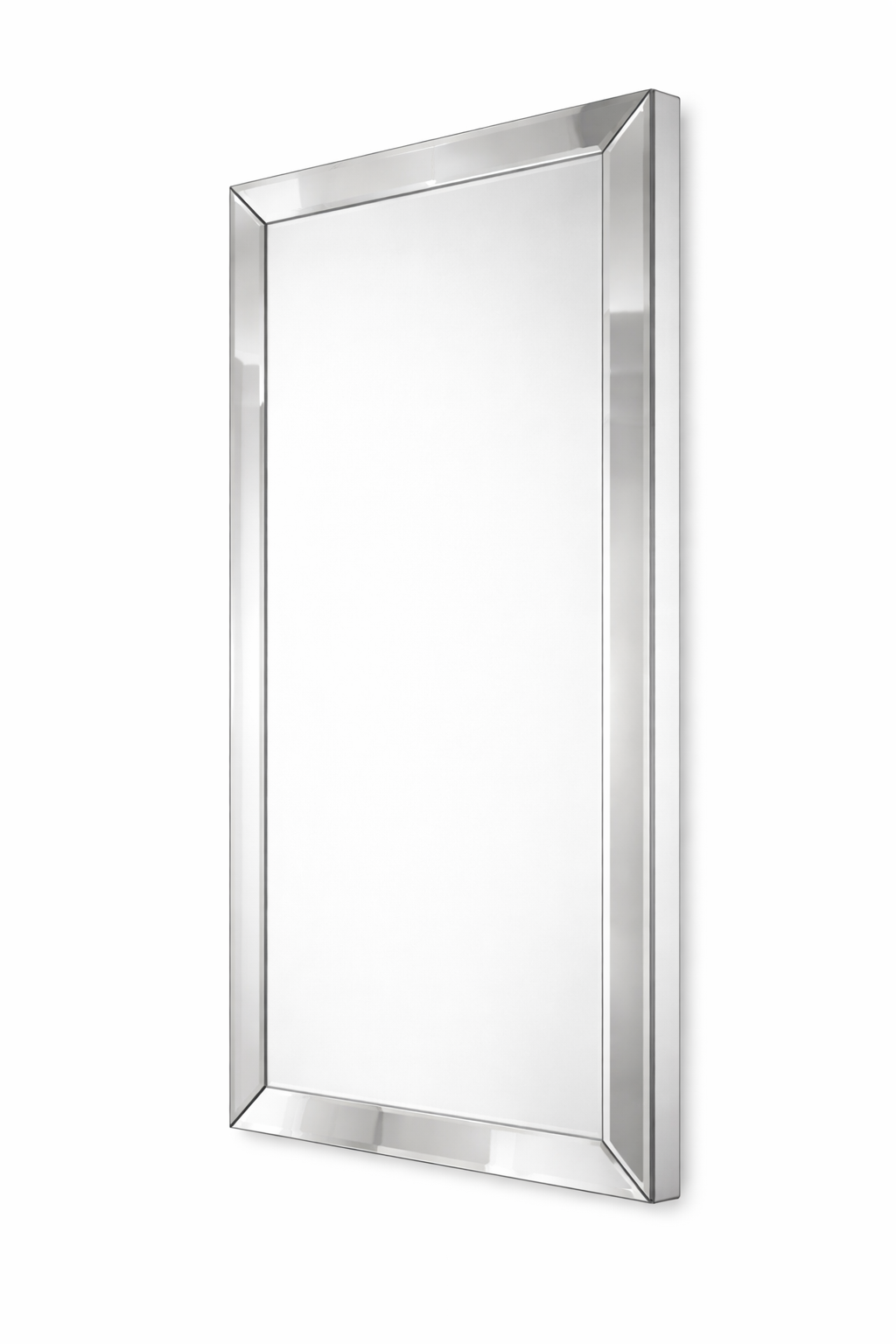 Este espejo tiene marco espejado | Tiene una base de madera sólida con recubrimiento de espejo en todos sus lados | La profundidad 6-8 cm | El espejo es de color plata | Tiene un bisel con brillo de 1-1.5 cm en cada sección | Tiene un soporte trasero para ser soportado en pared garantizando la seguridad de la pieza y de las personas que habitan en el espacio | Manual y accesorios para su instalación incluidos en su caja segura de envío.